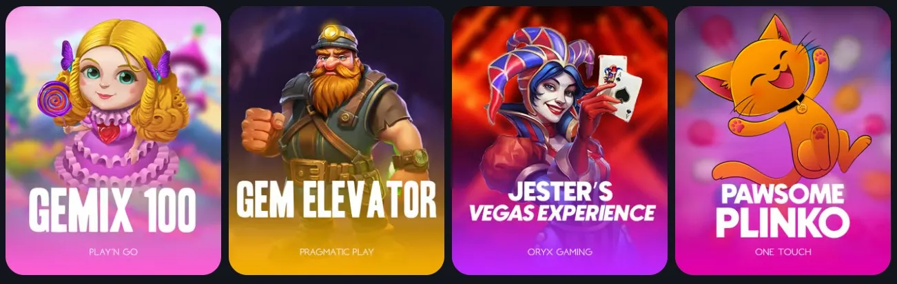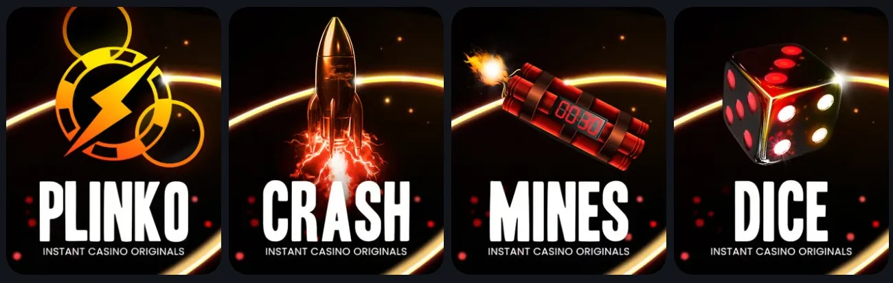 Plusieurs dizaines de jeux crash sont disponibles : jeux de mines, jeux crash et cartes à gratter. Pour indication, la particularité de ces jeux vient du fait que les sessions sont très courtes. Les règles sont simplissimes et amusantes. Le décor a tendance à rappeler aux joueurs leur enfance.