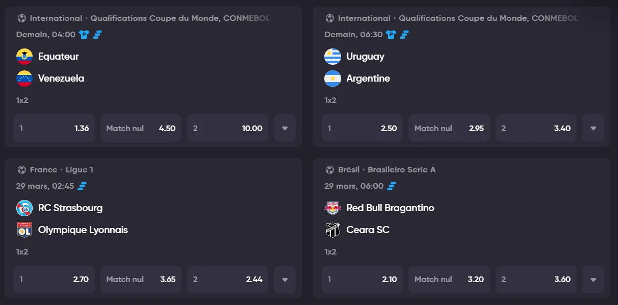 Tous les types de paris sportifs sont disponibles. C’est également un bookmaker à part entière, avec des cotes impressionnantes. Jouer